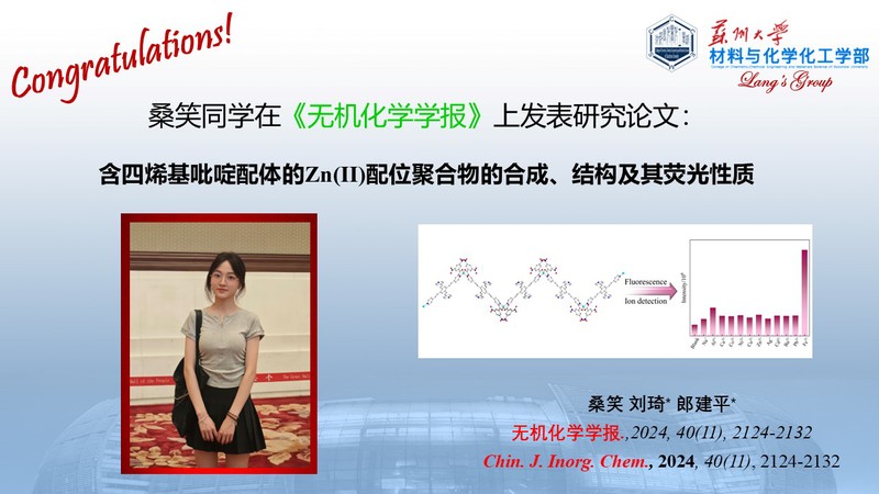 课题组硕士研究生 桑笑 近期在《无机化学学报》上发表研究成果