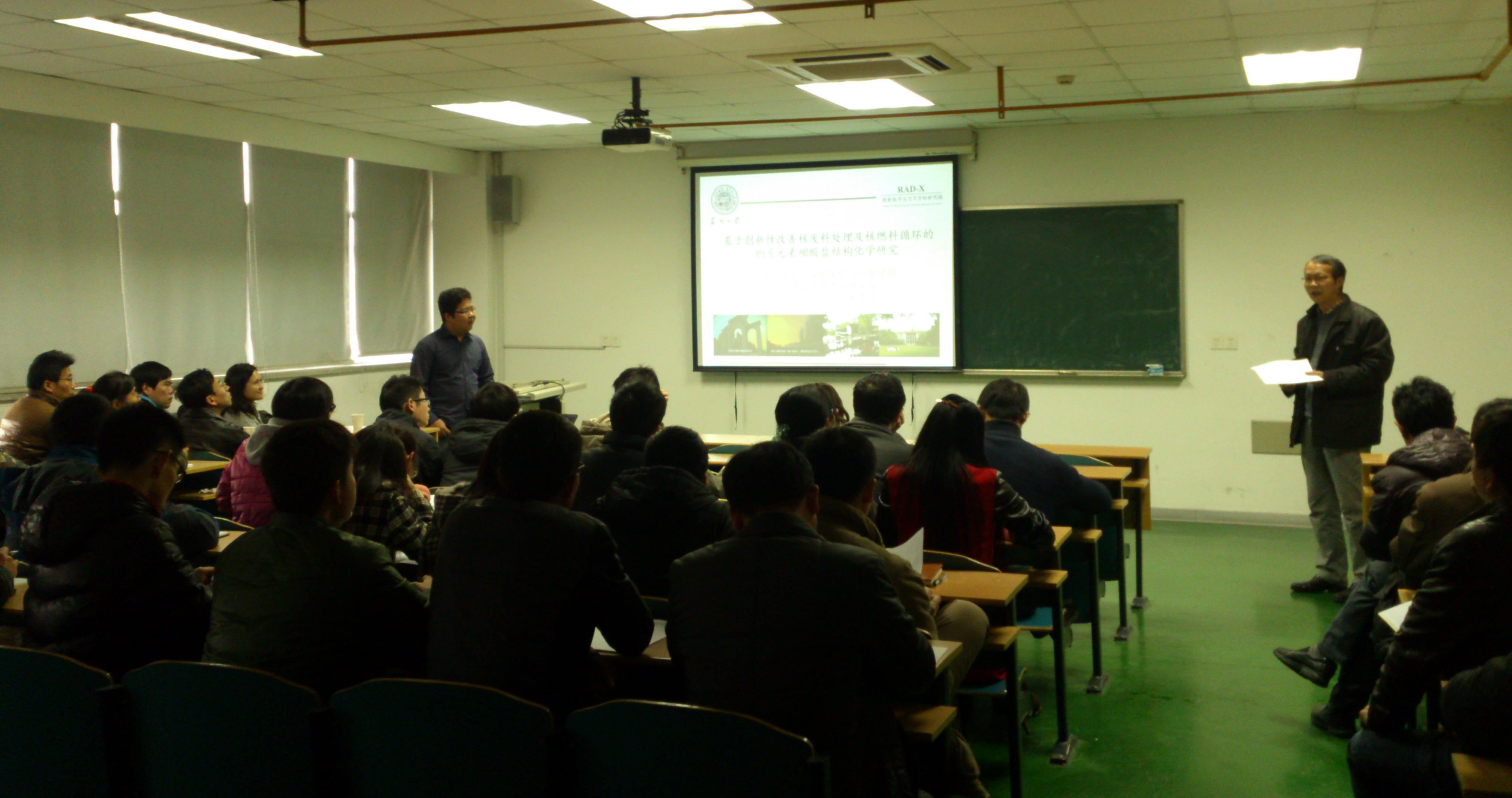 2013年12月4日,应苏州大学材料与化学化工学部、分子设计与器件实验室的盛情邀请,苏州大学放射医学与防护学院王殳凹教授来我院进行了交流访问,并为郎建平教授课题组研究生作了题为“基于创新性改善核废料处理及核燃料循环的锕系元素硼酸盐结构化学研究”的学术报告。