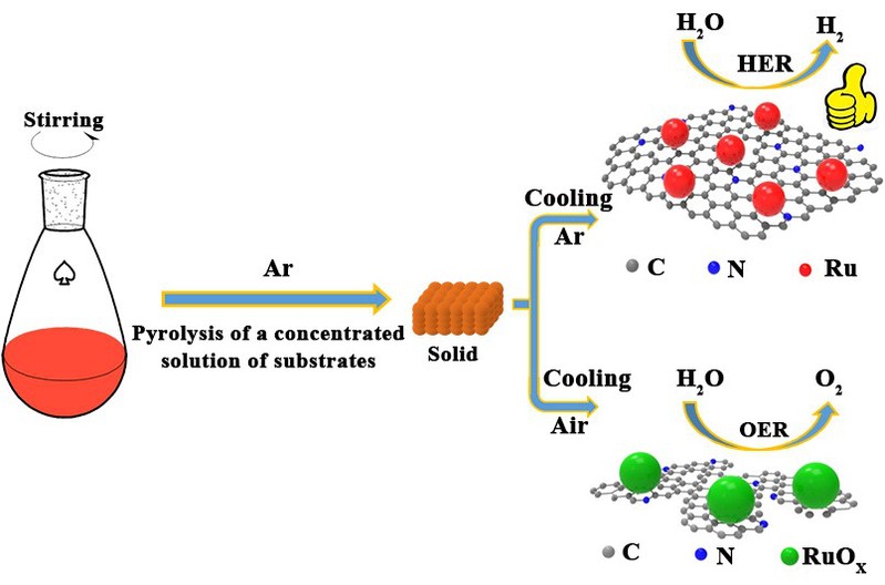 One-pot pyrolysis synthesis of highly active Ru/RuOX nanoclusters for water splitting